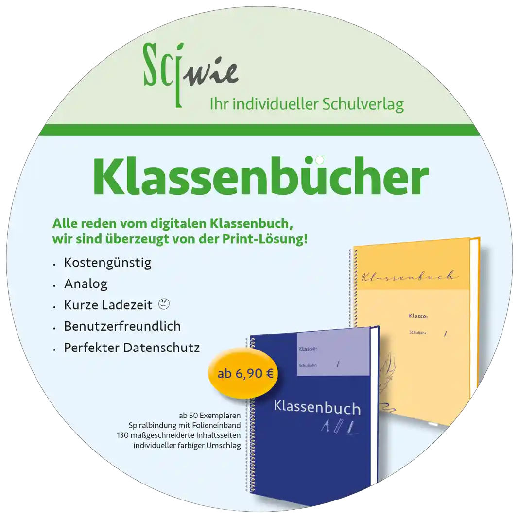Klassenbücher haben meist einen festen Einband – Dies realisieren wir gerne für Sie. Preiswerter wird es jedoch mit der Wahl einer Klebe- oder Spiralbindung.